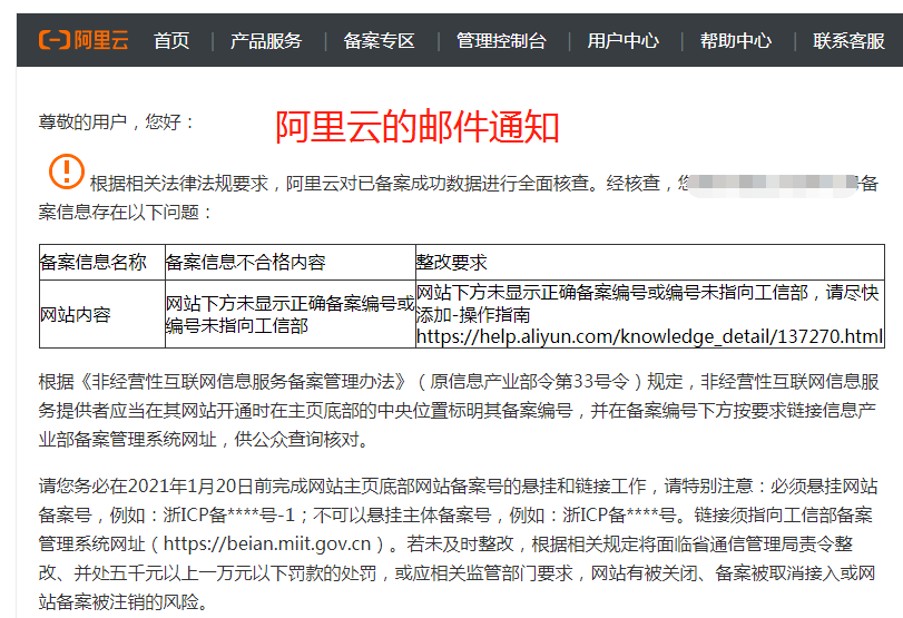 近期,很多用戶收到有關網站備案核查短信或郵件,提示用戶在網站下方未顯示正確備案編號或編號鏈接未指向工信部: