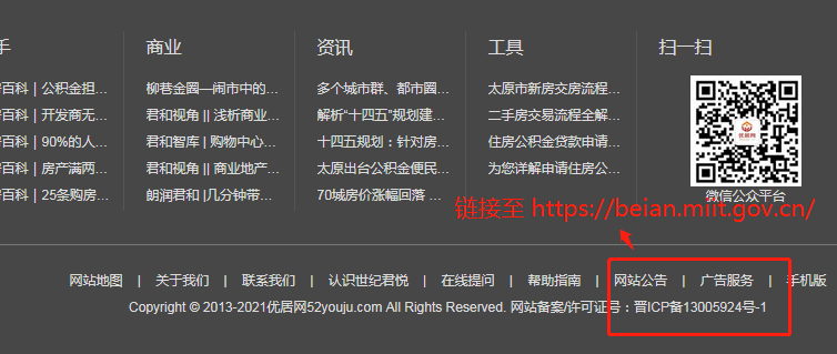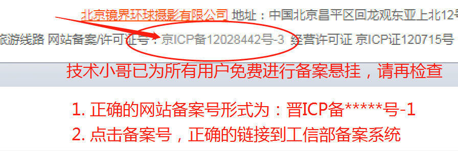 截至目前,宏微技術小哥已經加班加點,為所有用戶免費進行了網站備案號懸掛和鏈接指向修改。因修改涉及客戶數量多,修改范圍廣(此前只要求懸掛主體單位備案號如晉ICP備****號),各家客戶采用的網站系統和數據形式不同,雖反復檢查,仍唯恐遺漏,所以請廣大網站備案用戶務必在電腦端打開網站,查看首頁底部的網站備案號是否為“晉ICP備****號-1”形式,并測試點擊備案號可以打開工信部備案系統https://beian.miit.gov.cn,如出現遺漏或鏈接無法打開,請速速與我們聯系,避免被處罰或取消接入等風險。